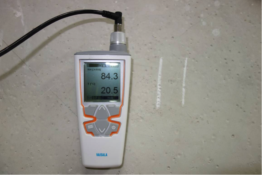 Unlike the Guernsey property the moisture was trapped and there was unfortunately no alternative but to remove the screed and under floor heating to expose the slab. Dehumidifiers were then used to dry out the exposed concrete slab. The drying was monitored in accordance with British Standards using VAISALA plugs and humidity measurements.